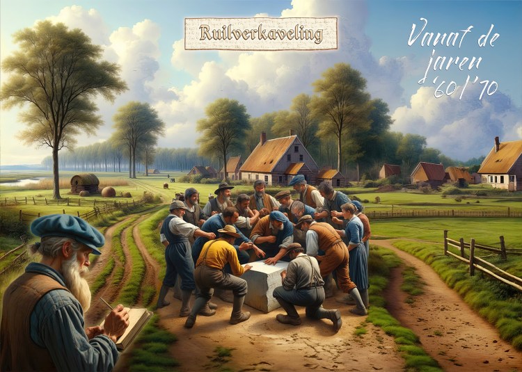 Als in 1967 een flink aantal boerderijen door de windhoos wordt vernietigd, moet daar écht iets voor gebeuren. De Provincie en het Rijk voeren de verplichte ruilverkaveling in. Alle boeren krijgen een uitnodiging om naar het net nieuwe dorpshuis te komen om daar te vertellen hoeveel vierkante meter grond zij hebben. “Wij hebben op dat moment bij elkaar 16.000 vierkante meter, verdeeld over zes plekken. Eén plek ligt bijvoorbeeld helemaal in Zoelmond. Die verschillende weilandjes her en der zijn heel onhandig. Koeien moeten op verschillende plekken gemolken worden en het materiaal dat je daarvoor nodig hebt moet steeds vervoerd worden. Door die ruilverkaveling komt er opeens een mooi perspectief om alle land in één keer op één plek bij de boerderij te hebben.