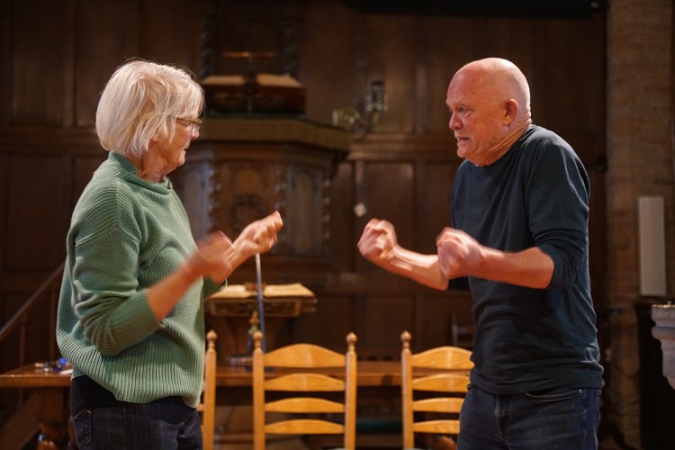 tekst en regie: Greet Mertens, composities en muzikale leiding: George Pancras, spel: Henk Fonteijn en Carin Fijnaut, muzikanten: George Pancras (trompet, zang), Marcel Titarsolej (gitaar, basgitaar, zang), Andrea van Beek (zang), Peter Wilms (marimba, zang), decor: Thea Zweije (met de hulp van Sjaan Roetman, Aafke Bronts, Ria van Burk, Vera Blijenberg, Mirjam Fonteijn, Sam Soesbergen, Carla Rubers en Nini Salet), techniek: Wim Huigen, Edy Scheele, scènefoto’s: Donald Schalk, foto affiche: Sophie Terluin, productie: Ton van Vlijmen.